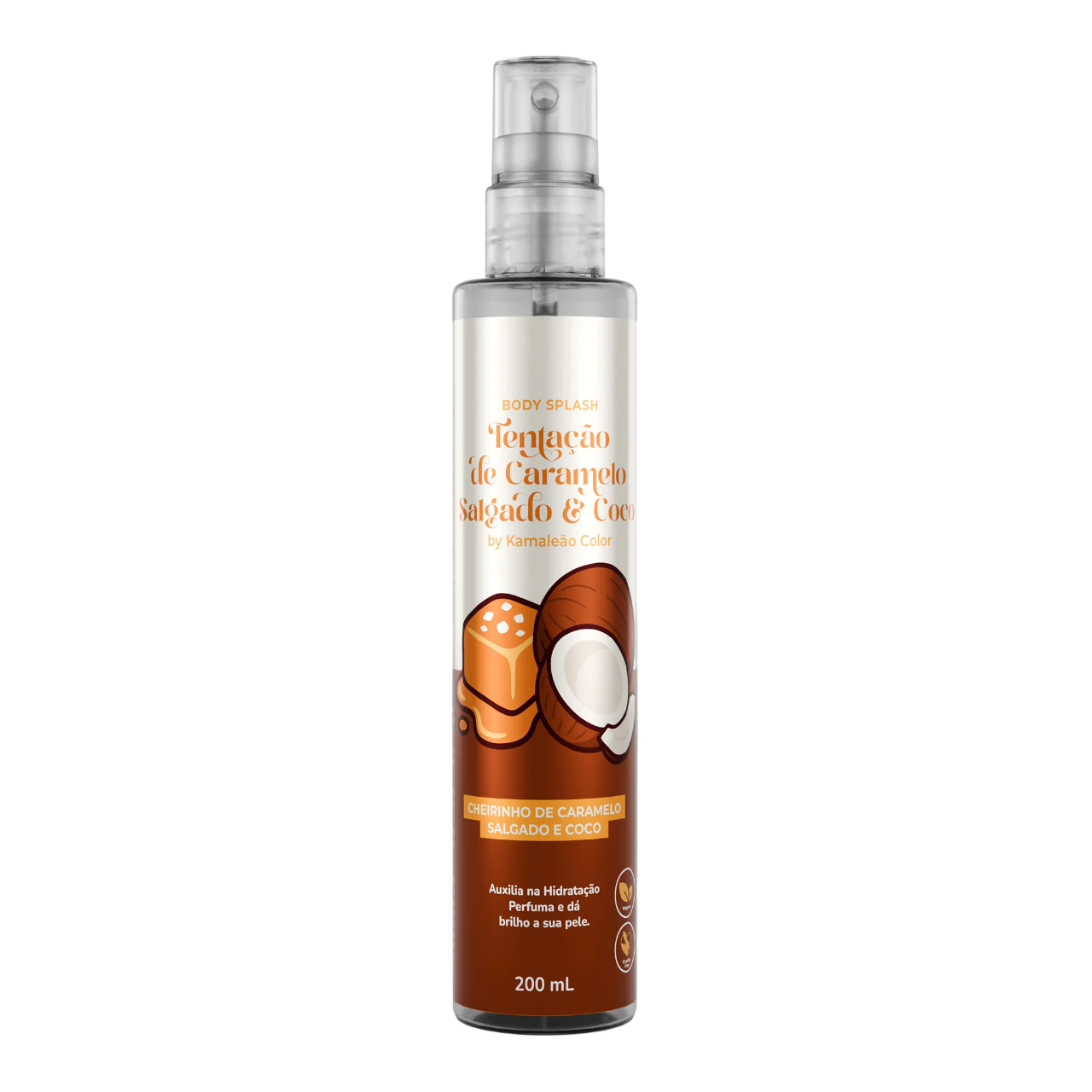 O Body Splash Tentação de Caramelo Salgado & Coco possui um perfil olfativo envolvente e cremoso, que combina sofisticação e conforto. Sua abertura é leve e acolhedora, transmitindo uma sensação imediata de bem-estar. Evolui para um corpo floral e suavemente adocicado, com nuances gourmand.